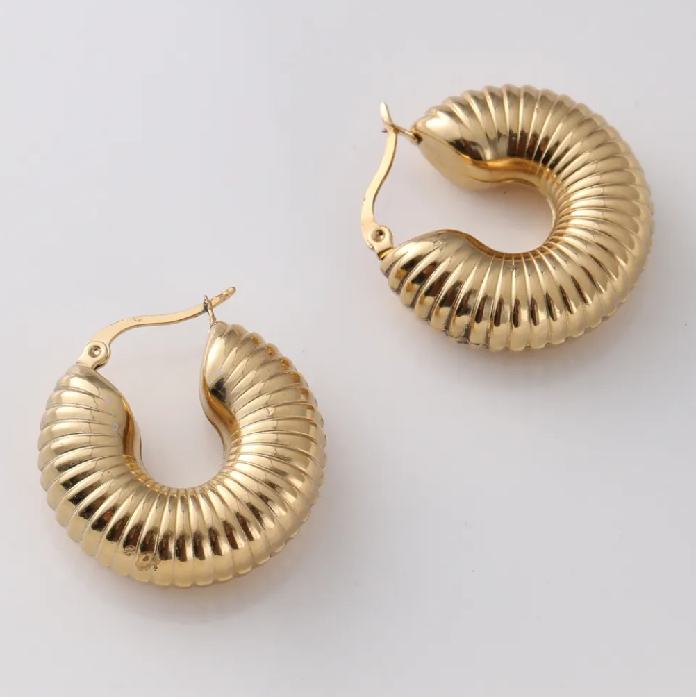 Meet your new power pair: the Bold Textured Hoops. Designed for the girl who doesn’t just walk into a room—she owns it. They’re unapologetically bold, effortlessly cool, and made to elevate even the simplest outfit. If your vibe is confident, fearless, and a little bit fierce—these are for you.