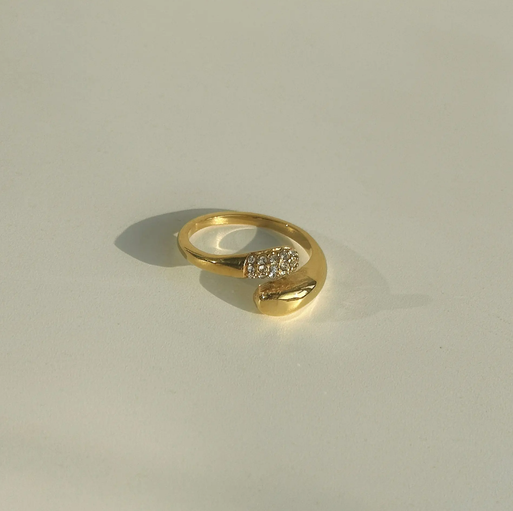 Introducing our Twilight Wrap Ring—a piece as unique as you are. This stunning ring features a sleek design that wraps around your finger, allowing for a perfect, adjustable fit. The real magic lies with the one end, where delicate cubic zirconia stones are set to create a shimmering, eye-catching effect.